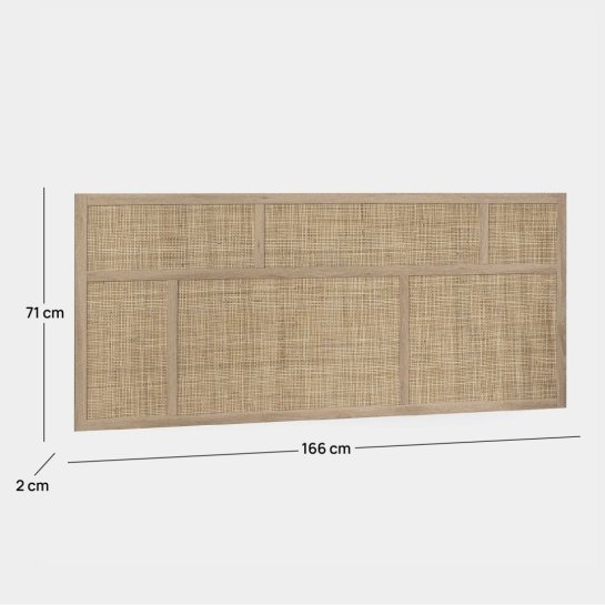 Testiera in legno naturale e rattan naturale per letto de 135, 150 e 160