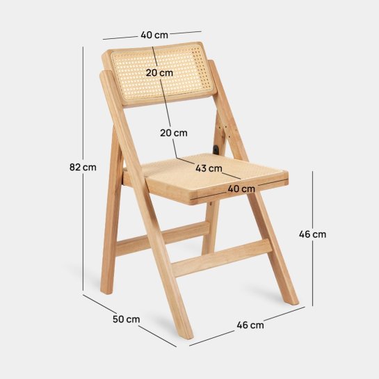 La sedia pieghevole Pia combina il calore del legno di hevea con la leggerezza del rattan, offrendo un design elegante e funzionale. La sua capacità di piegarsi facilmente consente di risparmiare spazio e mantenere la casa organizzata. Con Pia, potrai godere di una soluzione di seduta che fonde estetica e praticità. Essendo in legno massello, potrebbe presentare variazioni di colore proprie del materiale.