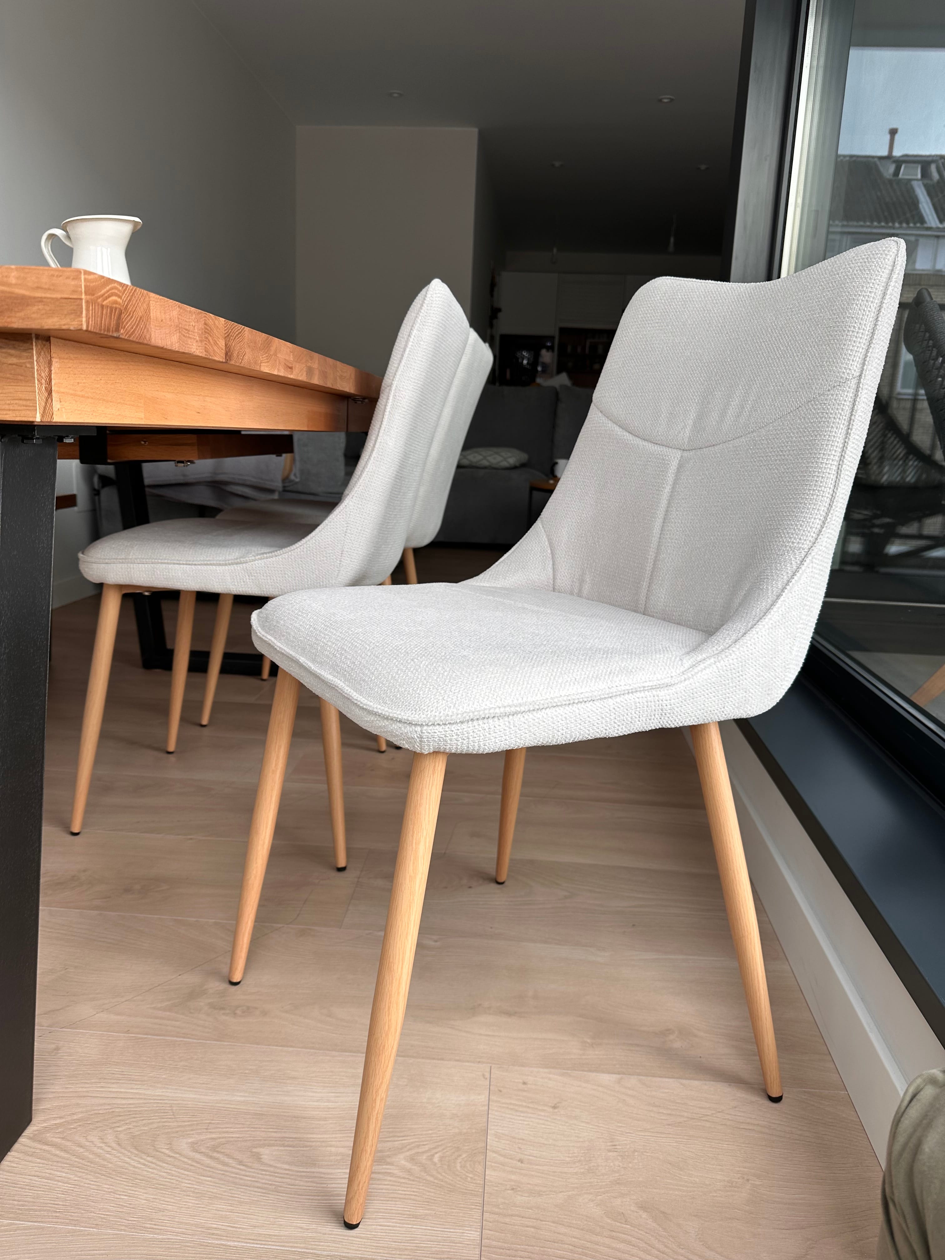 Approfitta di questo set! La sedia da pranzo Selma è la scelta perfetta per aggiungere eleganza e comfort alla tua casa. Il suo rivestimento in un morbido tono beige e le sue gambe metalliche effetto legno offrono uno stile senza tempo che si integra facilmente in qualsiasi ambiente. Disponibile in diverse varianti di rivestimento, scegli quella che si adatta meglio al tuo stile decorativo.