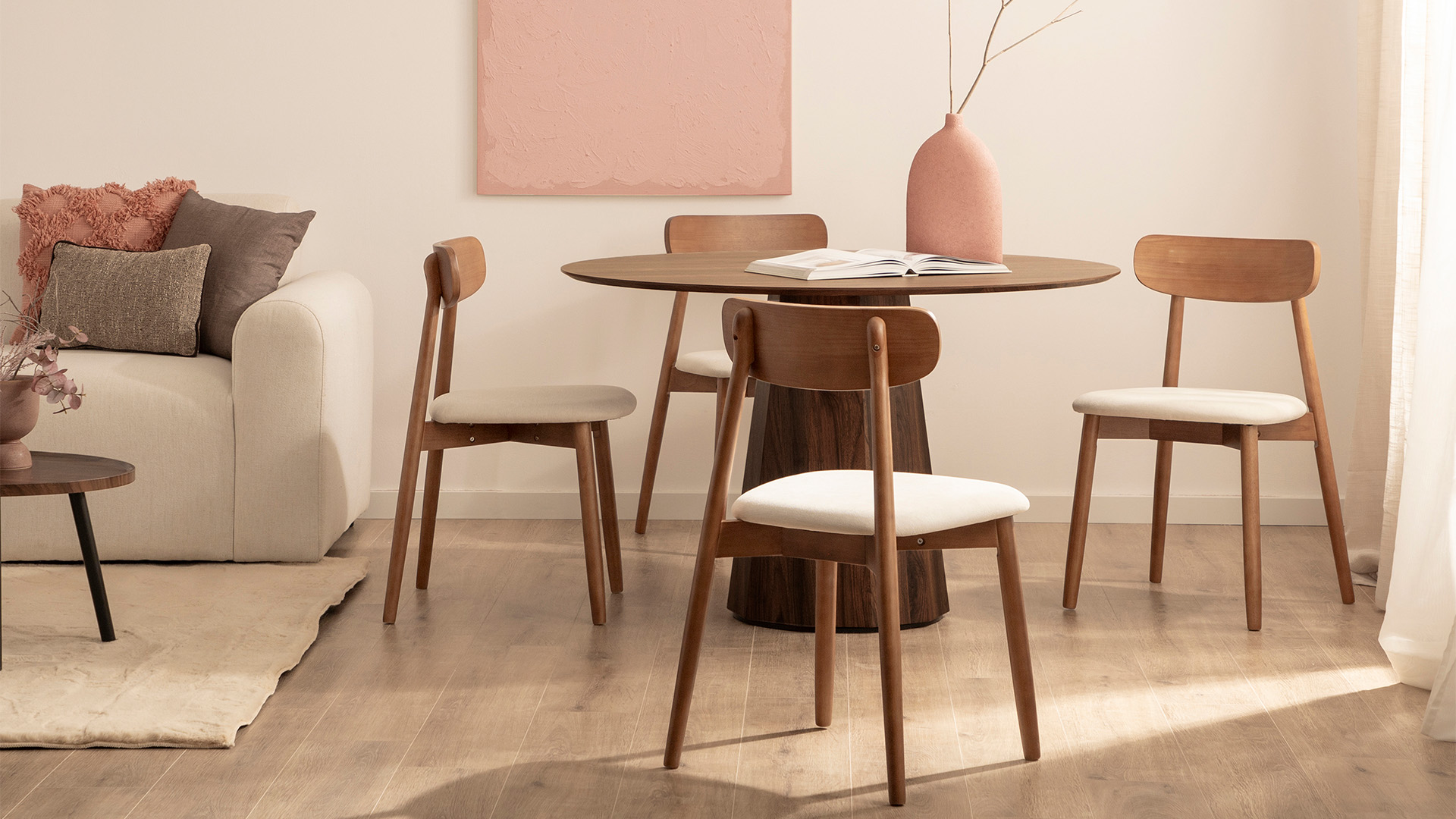 Approfitta di questo set! La sedia da pranzo Leyre, realizzata in legno di hevea in tonalità noce e con seduta imbottita in beige, unisce eleganza e comfort. Il suo design senza tempo e i materiali di qualità la rendono perfetta per la sala da pranzo o il soggiorno. Essendo realizzata in legno massello naturale, potrebbe presentare leggere variazioni di colore proprie del materiale.