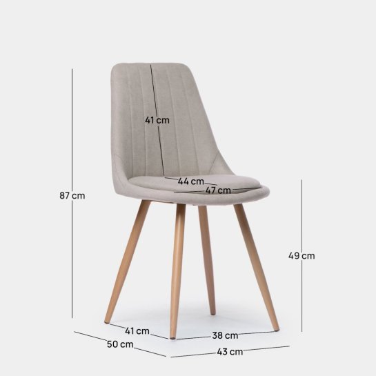 Approfitta di questo set! La sedia da pranzo imbottita Ingrid è una perfetta scelta per il tuo salotto o sala da pranzo. Con schienale in poliestere effetto rigato e cuscino inferiore, questa bellissima sedia con gambe in metallo effetto legno si distingue per il suo comodo sedile e il suo design dalle linee semplici. Scegli uno dei 4 colori disponibili sul nostro sito web e dai un tocco elegante al tuo salotto.