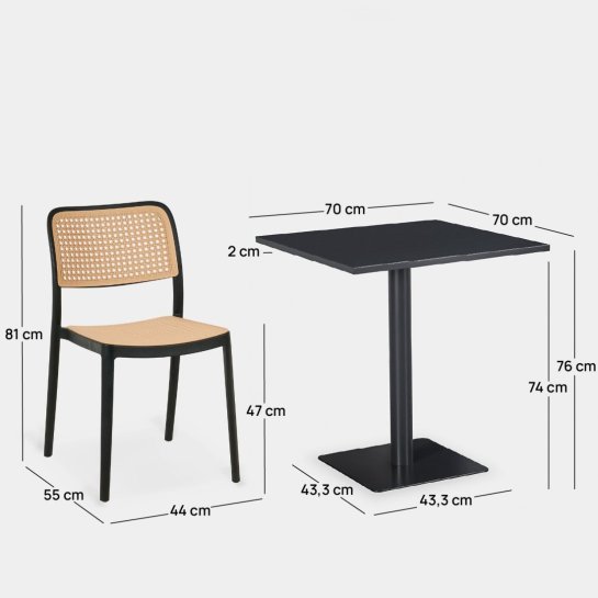 Approfitta di questo set! La sedia Kaira è ideale se stai cercando comfort, eleganza e funzionalità. È impilabile, realizzata in polipropilene, un'opzione molto pratica per qualsiasi spazio. Il tavolo da giardino quadrato Thule, completamente realizzato in metallo, è perfetto per essere all'aperto e resistere alle intemperie. Puoi anche trovare il pacchetto in bianco e scegliere l'opzione che preferisci.