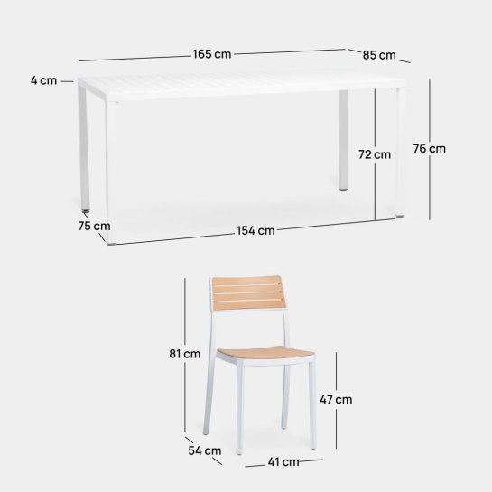 Approfitta di questo set! La sedia Hilda è l'opzione ideale per coloro che cercano la combinazione perfetta di eleganza e funzionalità. È impilabile, realizzata in polipropilene, una scelta perfetta per l'uso in cucina, giardino o terrazza. Il tavolo da giardino rettangolare Jastorf, realizzato in polipropilene e metallo, è pronto per essere utilizzato all'aperto e resistere alle intemperie. Puoi anche trovare il pacchetto in nero e scegliere l'opzione che preferisci.