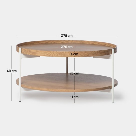 Tavolino da salotto Ø78 in legno naturale con gamba bianca