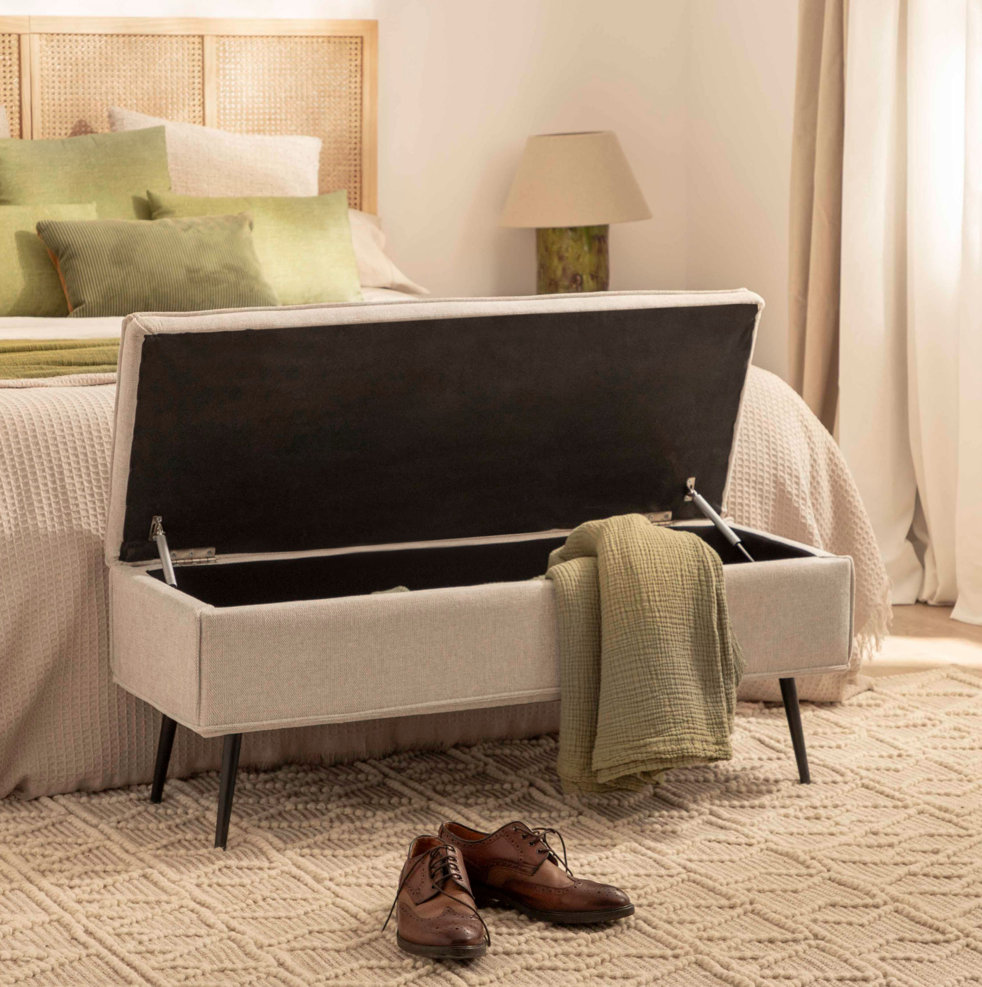 Opbergkisten zijn perfect voor het bewaren van dekens, beddengoed of grote tassen, alles netjes beschermd en uit het zicht. Bovendien laten ze zich gemakkelijk integreren in het interieur – aan het voeteneinde van het bed, in de woonkamer of zelfs in de hal.