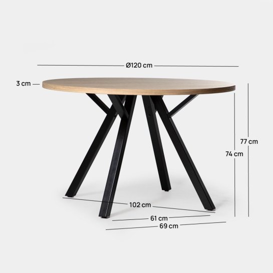 Ronde eettafel Ø120 in natuurlijk hout met zwarte poot