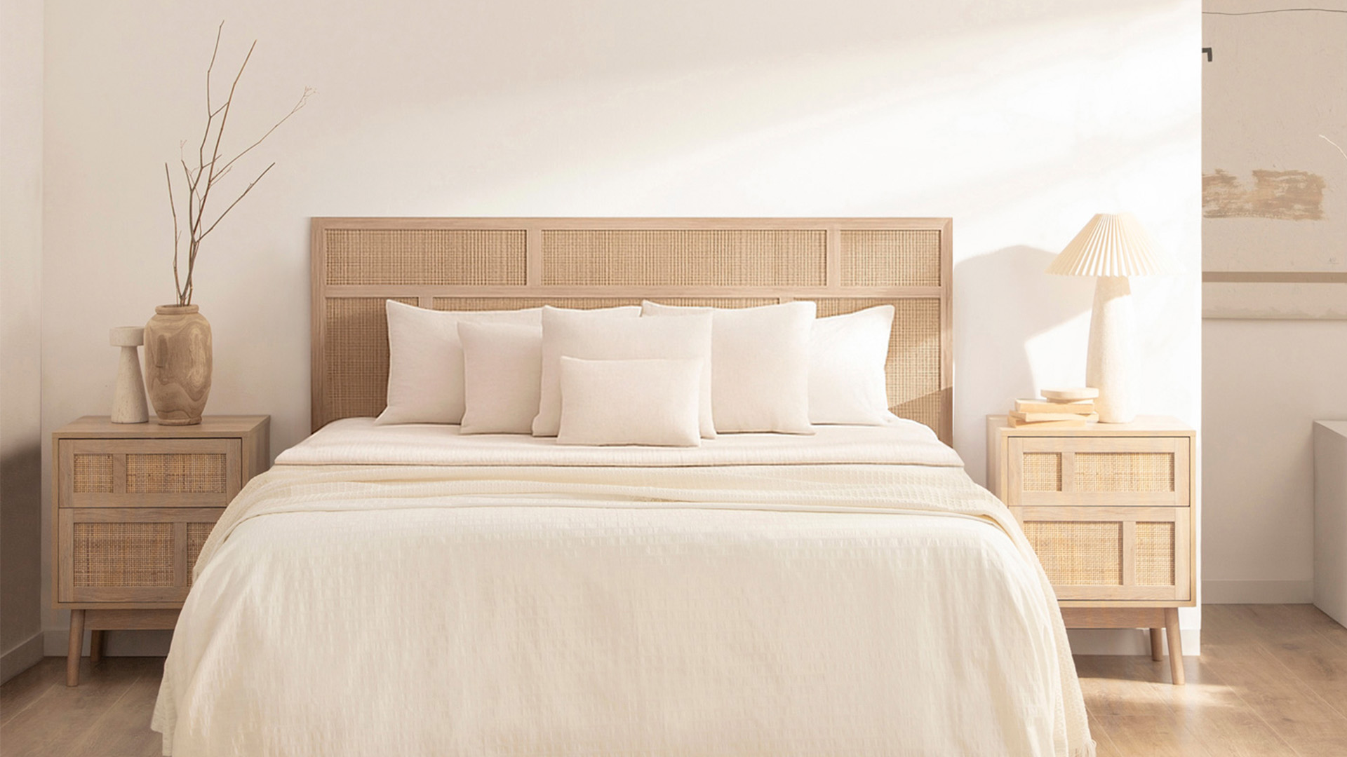 Het Ikigai hoofdbord, afgewerkt met hout en natuurlijk rotan, brengt warmte en sereniteit in je slaapkamer. Het ontwerp combineert de elegantie van Scandinavische stijl met de puurheid van Japans minimalisme en creëert zo een unieke sfeer in je slaapkamer. Het kan worden gebruikt in bedden van 135, 150 en 160. Het vereist muurverankering en de schroeven zijn inbegrepen. Combineer het met andere meubels uit de collectie voor een complete en tijdloze look.