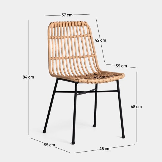 La silla Kyna en ratán sintético es la mejor combinación entre confort y estilo, perfecta para tu hogar. Su amplio asiento ofrece comodidad y resistencia, mientras que sus patas metálicas negras añaden un toque moderno y elegante. Su diseño y sus materiales la convierten en una pieza ideal para comedores, cocinas o incluso ambientes exteriores. Una buena elección para quienes buscan un toque cálido y especial en sus muebles.