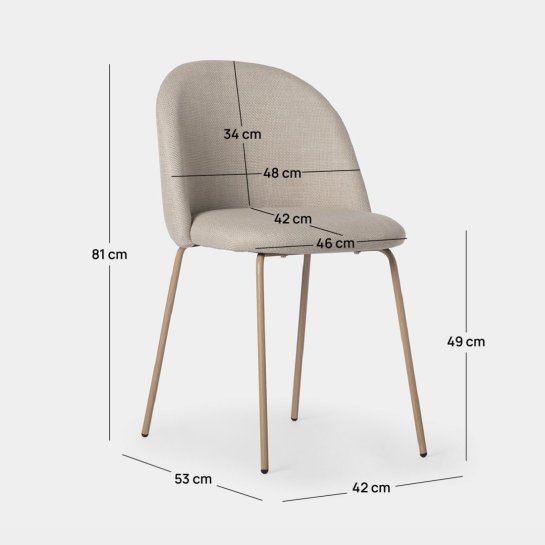 Profiteer van dit Set! De eetkamerstoel Olivia met beige bekleding en metalen poten met een natuurlijke kleur heeft een elegant en simpel design, gebaseerd op de jaren '50. De korte, ronde rugleuning en taps toelopende, stompe poten doen denken aan die verfijnde en functionele zitmodellen die bij elke stijl passen. Kies uit een van de beschikbare bekledingen en zorg dat je woonkamer of eetkamer opvalt met dit onderscheidende element.