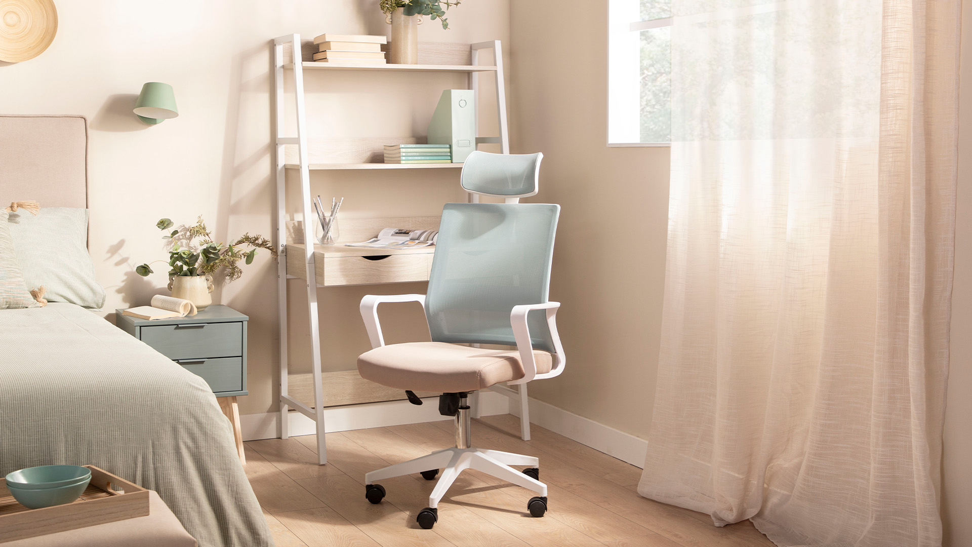 Cadeira de escritório menta e bege
