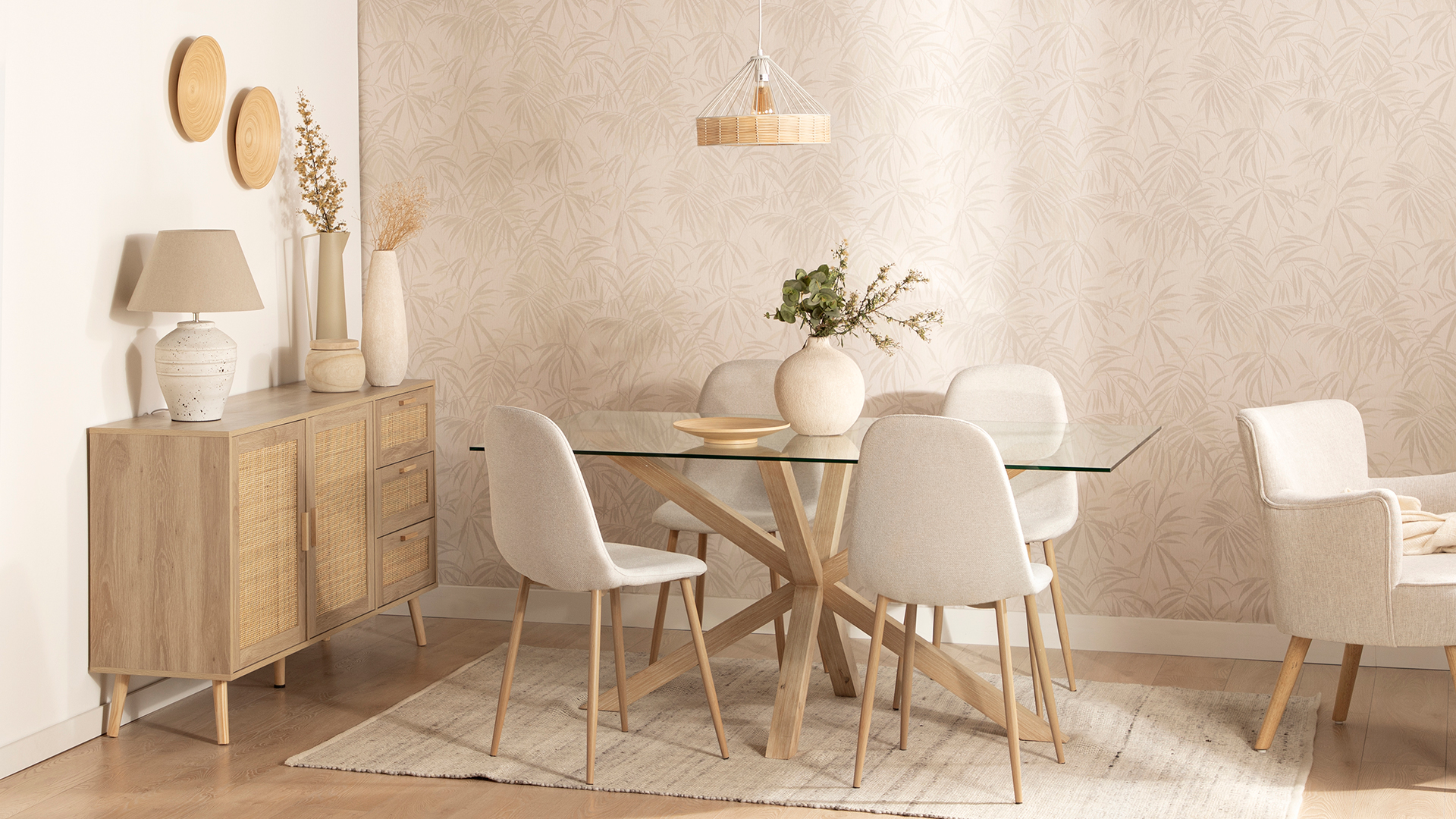 A cadeira de jantar Ellis estofada com perna de metal com efeito madeira se tornará a estrela da sua sala de jantar graças ao seu design exclusivo e elegante. Desfrute desta cadeira versátil e ergonómica onde mais precisar, seja como cadeira de jantar ou também como cadeira de secretária. Os seus diferentes estofos dão-lhe a possibilidade de combiná-lo com diferentes estilos.
