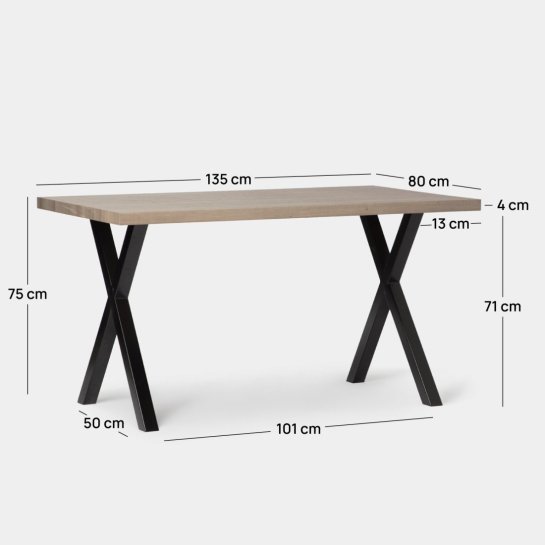 Mesa de jantar retangular 135 em madeira cor natural com perna metálica preta