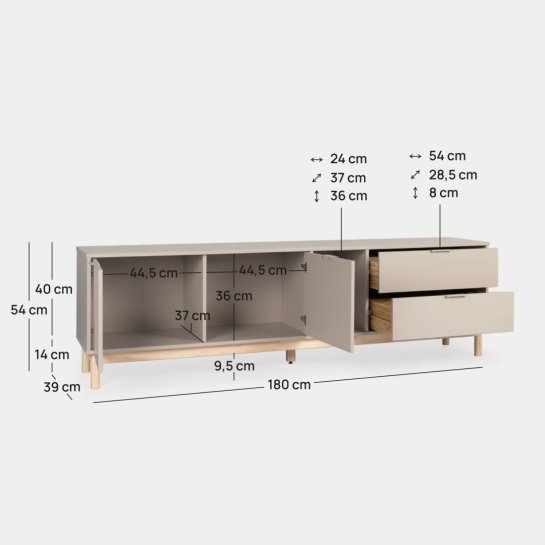O móvel de TV lacado em cinza pérola Elian é perfeito para adicionar um toque nórdico e acolhedor à sua casa. Suas duas portas, espaço e gavetas oferecem a possibilidade de armazenar seus objetos de forma organizada e acessível, mantendo sua sala limpa e organizada. Combine-o com outros móveis da coleção para obter um visual completo e harmonioso.