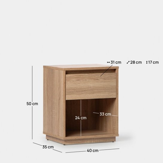 Aproveite este pack de 2 mesas de cabeceira! A mesa de cabeceira Oslo em cor efeito madeira natural tem uma gaveta e um espaço aberto que lhe permitirá guardar objectos maiores que queira ter no seu quarto. O seu design nórdico faz desta mesa de cabeceira uma aposta segura, pois o estilo escandinavo nunca falha. Também está disponível noutras cores.